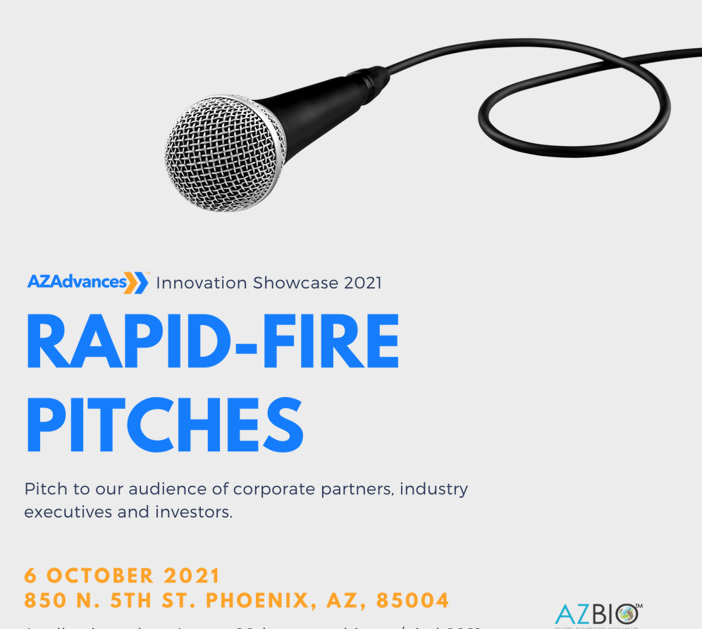 Join AZBio at the AZAdvances Innovation Showcase Rapid-Fire Pitch Competition- where startups will present 2 minute pitches to a panel of Angel & VC investor judges, followed by a short feedback session.